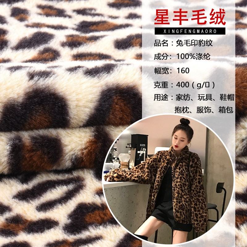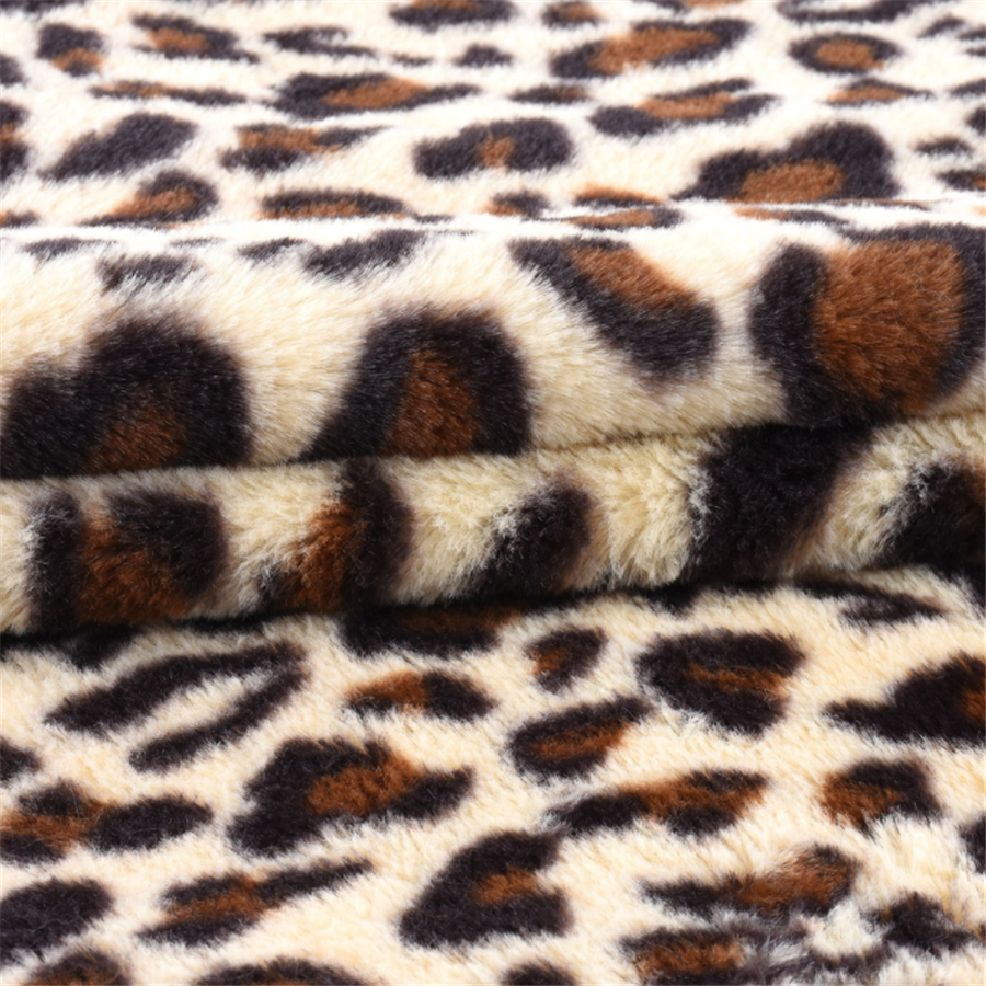 现货 兔毛印花豹纹 长毛绒布料 印花毛绒 豹纹时尚面料